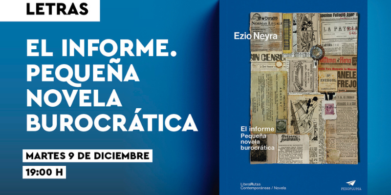 El próximo 9 de diciembre seremos sede del lanzamiento del libro "El Informe. Pequeña novela burocrática" del escritor Ezio Neyra, de la editorial Pesopluma.